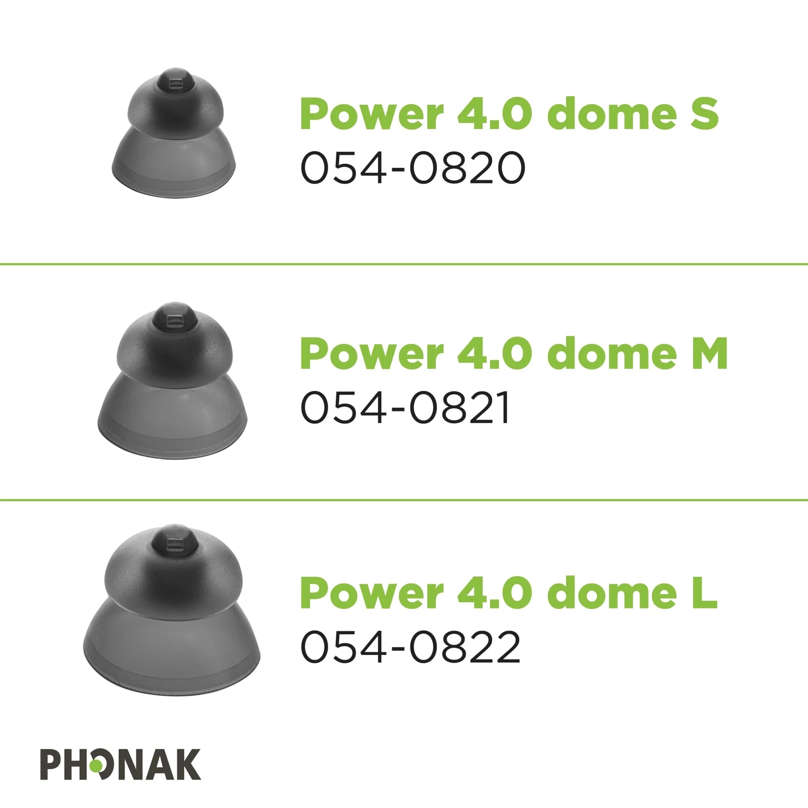 Built for users who need more amplification, Phonak power domes create a tight acoustic seal that improves gain and reduces feedback. These double-flange domes are soft, secure, and ideal for high-power receiver fittings.