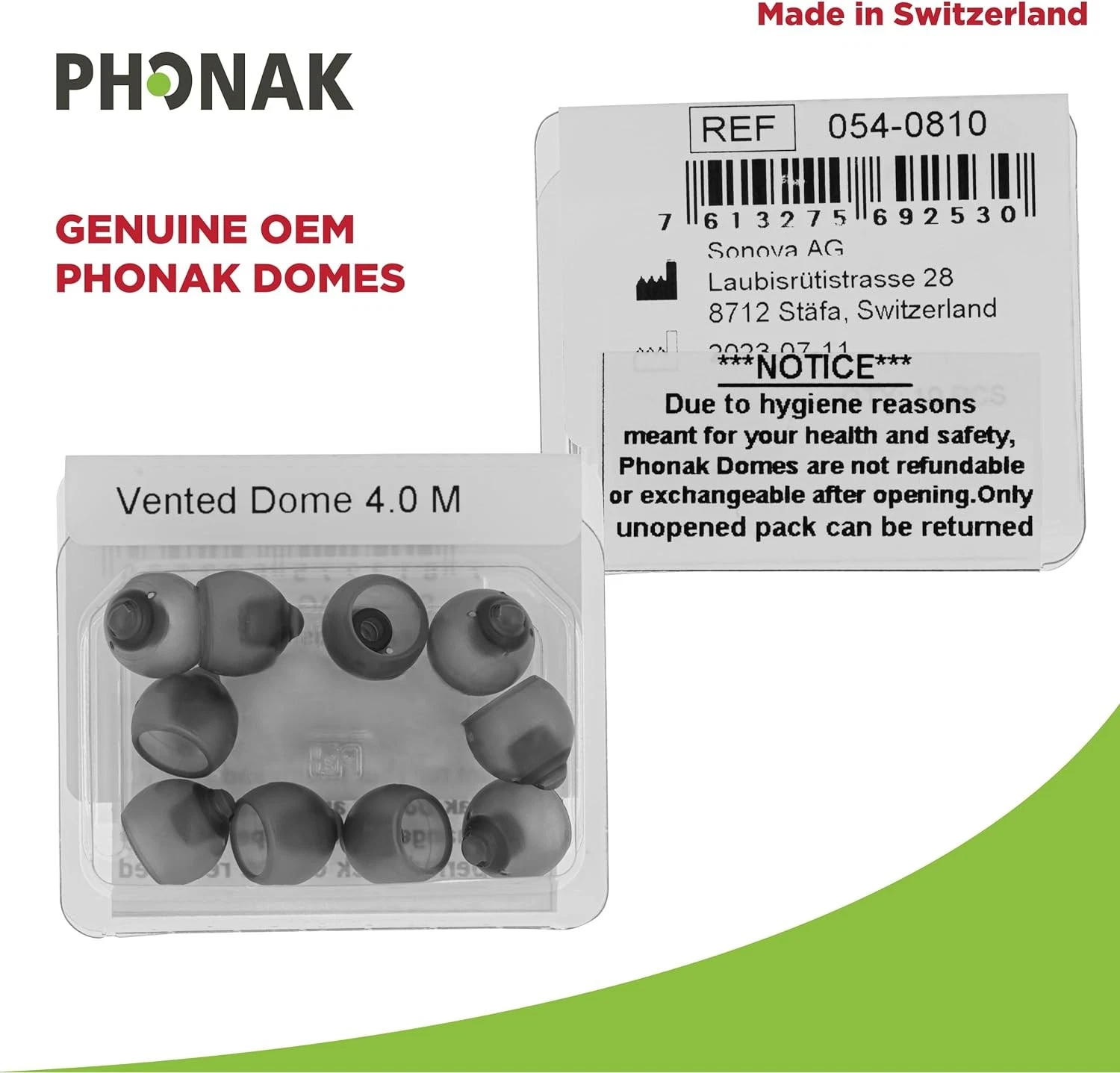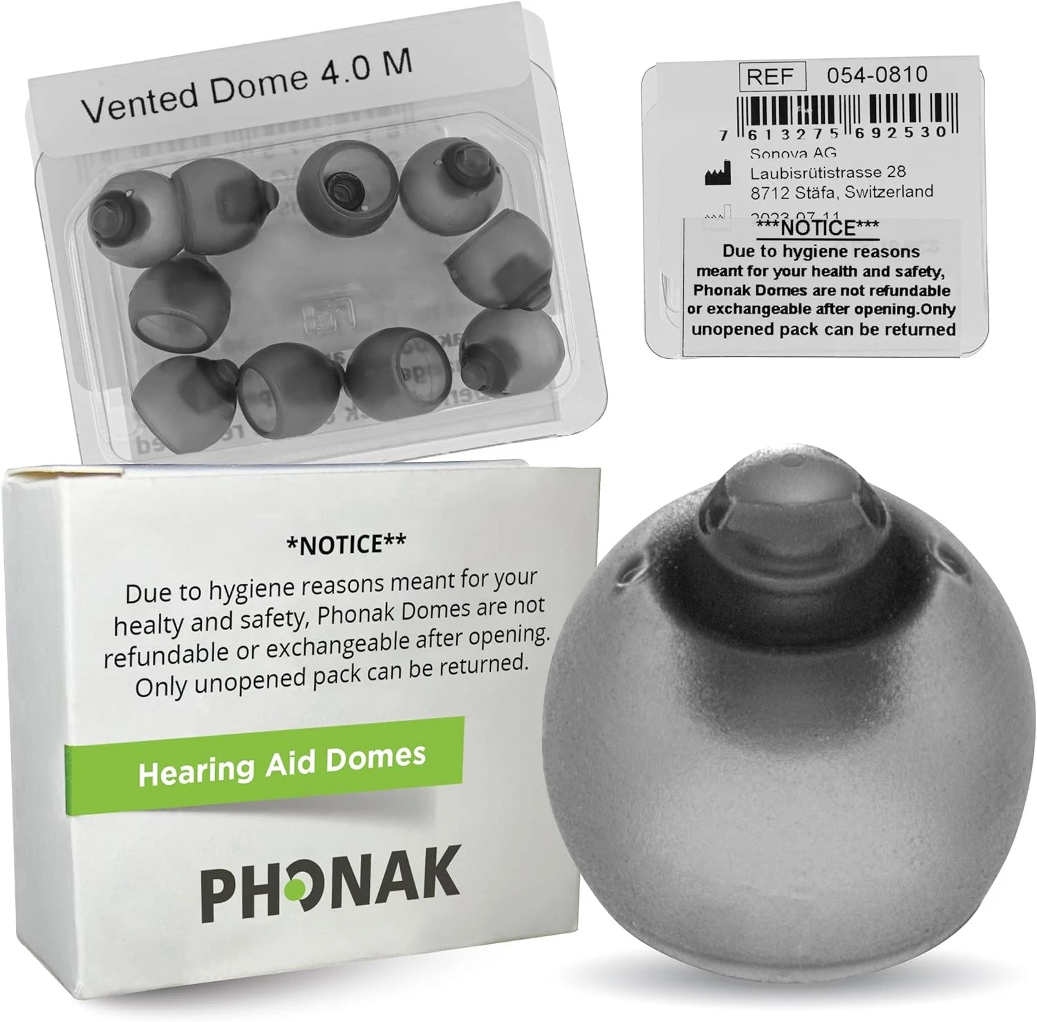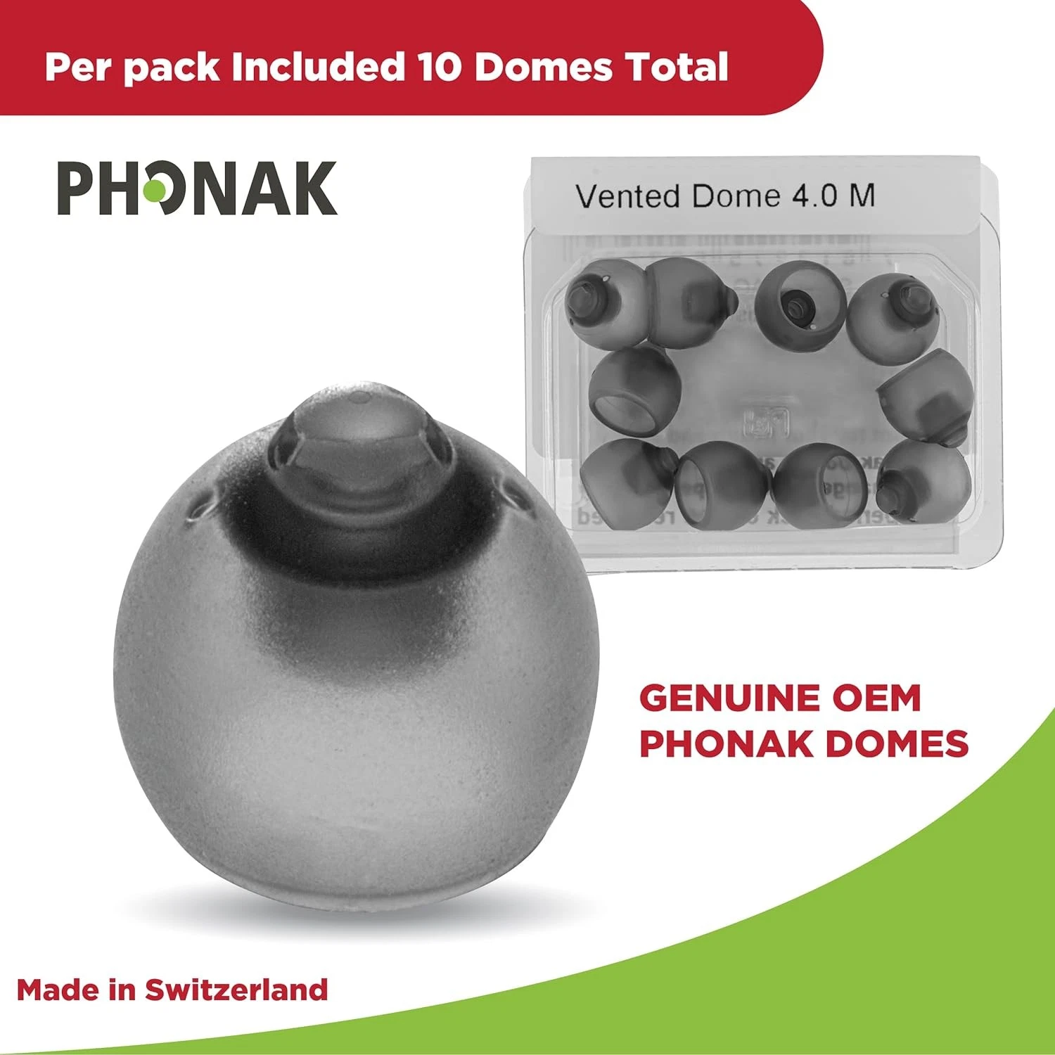 Phonak vented domes provide a comfortable fit while allowing airflow to reduce occlusion and maintain sound transparency. Ideal for mild to moderate hearing loss, these domes support a more natural listening experience.